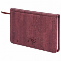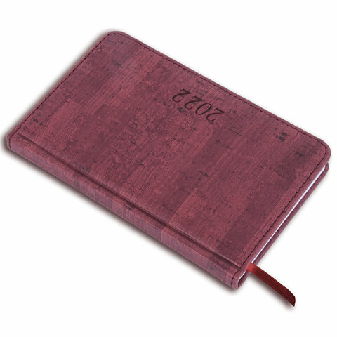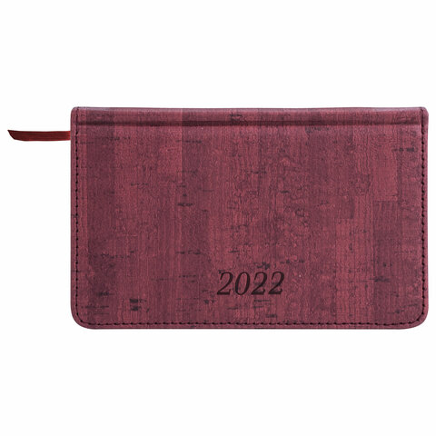 Еженедельник датированный 2022 МАЛЫЙ ФОРМАТ 95х155 мм А6, BRAUBERG 'Wood', под кожу, бордовый, 11289
