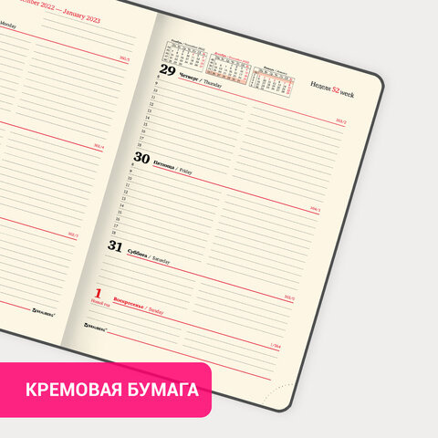 Датированный еженедельник BRAUBERG 'Augustus' – настоящая классика, проверенная временем. Идеально подойдет для офисных работников и людей, занимающихся бизнесом и ценящих свое драгоценное время.