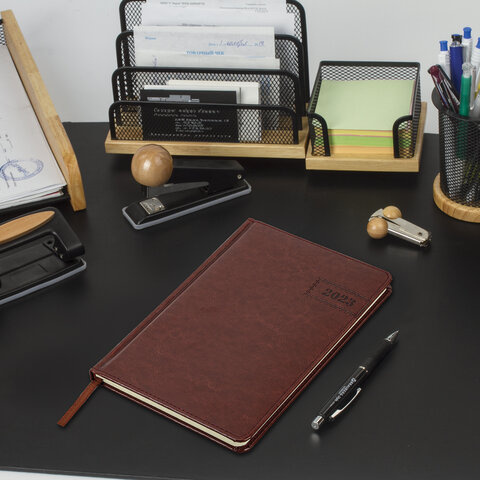 Еженедельник датированный 2023 А5 145х215 мм BRAUBERG 'Imperial', коричневый, 113950