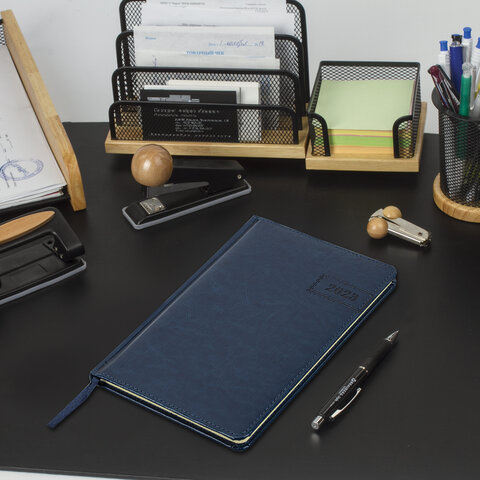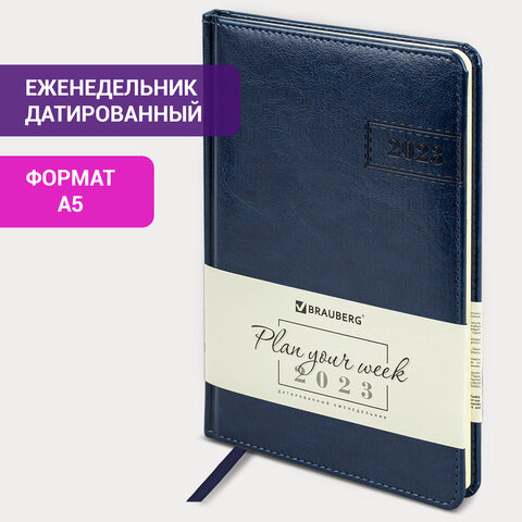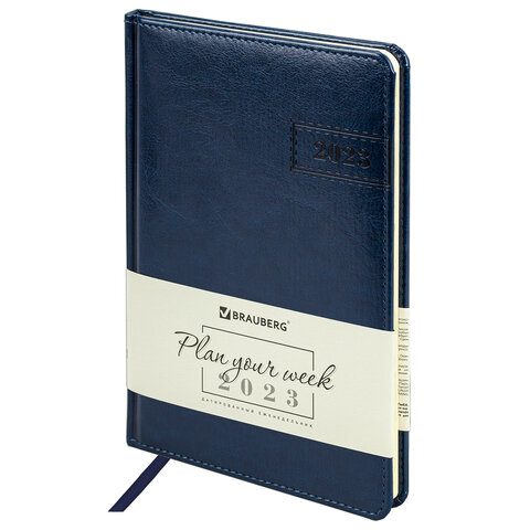 Еженедельник датированный 2023 А5 145х215 мм BRAUBERG 'Imperial', синий, 113951