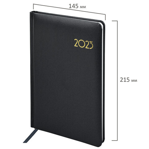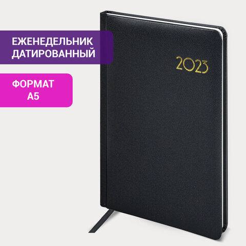 Еженедельник датированный 2023 А5 145х215 мм BRAUBERG 'Select', черный, 113958