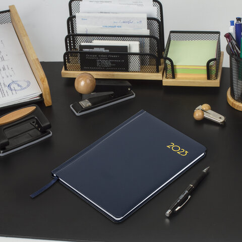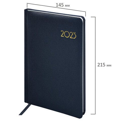 Еженедельник датированный 2023 А5 145х215 мм BRAUBERG 'Select', синий, 113957