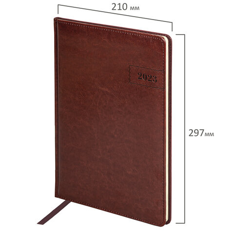 Еженедельник датированный 2023 БОЛЬШОЙ ФОРМАТ 210х297 мм А4, BRAUBERG 'Imperial', коричневый, 113938