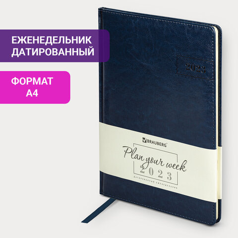 Еженедельник датированный 2023 БОЛЬШОЙ ФОРМАТ 210х297 мм А4, BRAUBERG 'Imperial', синий, 113939