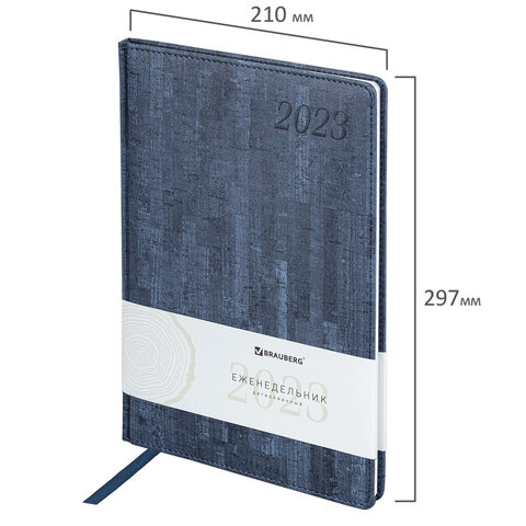Еженедельник датированный 2023 БОЛЬШОЙ ФОРМАТ 210х297 мм А4, BRAUBERG 'Wood', синий, 113940
