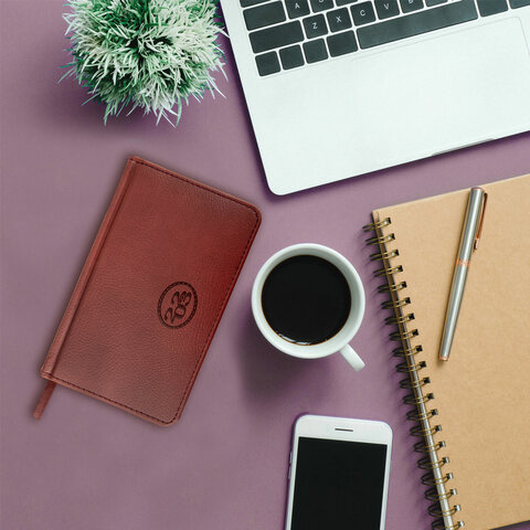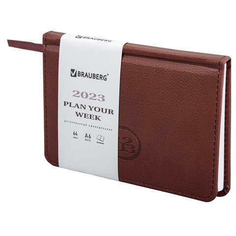 Еженедельник датированный 2023 МАЛЫЙ ФОРМАТ 95х155 мм А6, BRAUBERG 'Favorite', под кожу, коричневый,