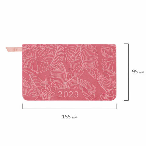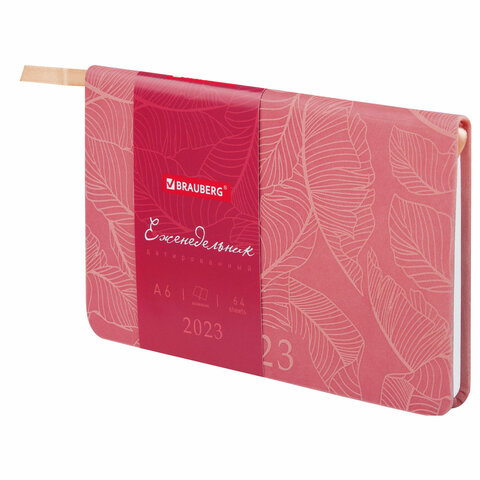 Еженедельник датированный 2023 МАЛЫЙ ФОРМАТ 95х155 мм А6, BRAUBERG 'Foliage', под кожу, розовый, 113