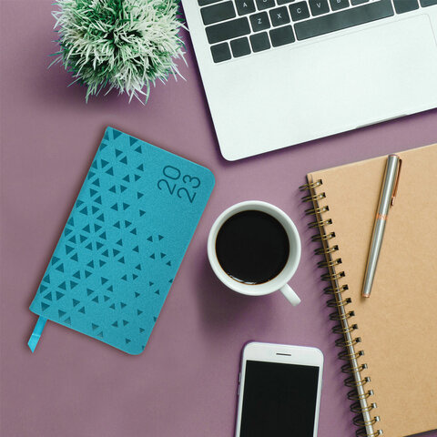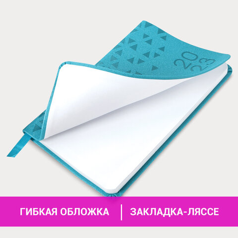 Еженедельник датированный 2023 МАЛЫЙ ФОРМАТ 95х155 мм А6, BRAUBERG 'Glance', под кожу, бирюзовый, 11