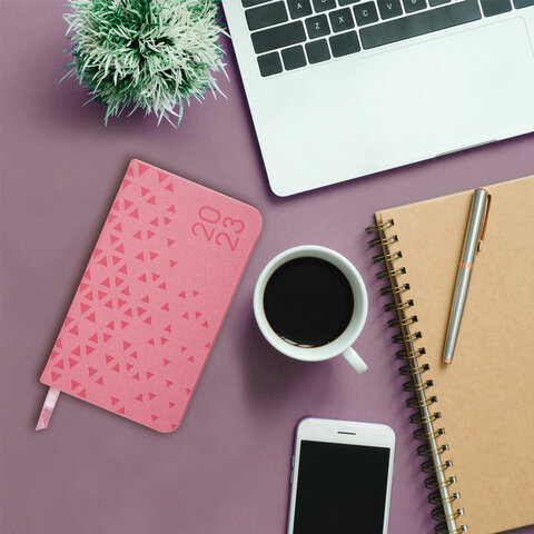 Еженедельник датированный 2023 МАЛЫЙ ФОРМАТ 95х155 мм А6, BRAUBERG 'Glance', под кожу, розовый, 1139