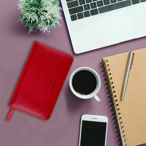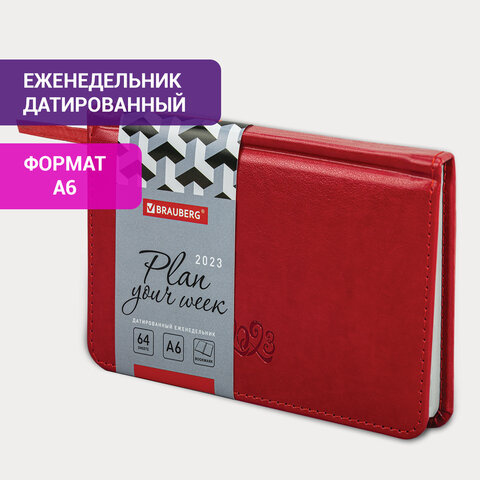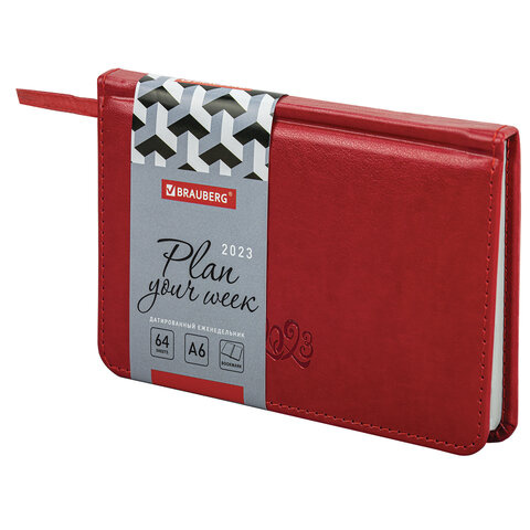 Еженедельник датированный 2023 МАЛЫЙ ФОРМАТ 95х155 мм А6, BRAUBERG 'Rainbow', под кожу, красный, 113