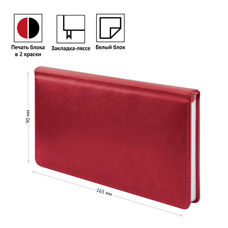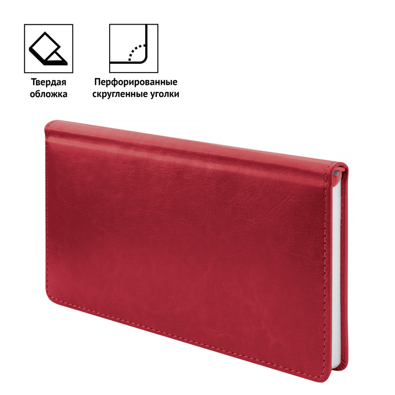 Еженедельник датированный карманного формата из коллекции «Nebraska». Обложка изготовлена из высококачественного кожзаменителя с поролоновой прослойкой, цвет обложки - бордовый. Внутренний блок состоит из 64 листов офсетной бумаги плотностью 70 г/м2, печать блока в 2 краски, справочный материал. Удобная закладка-ляссе.