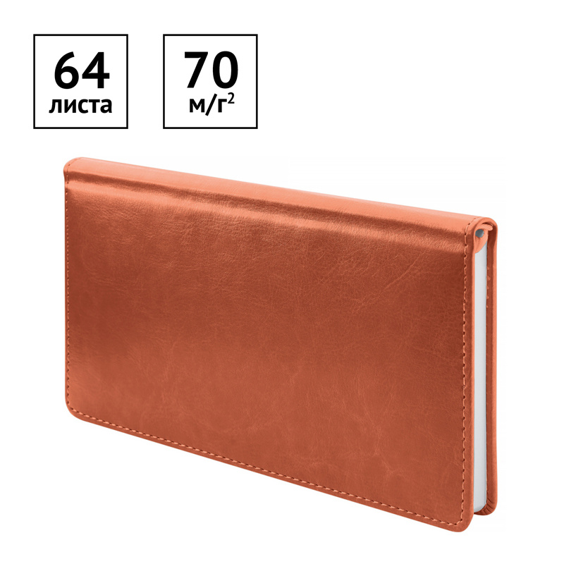 Еженедельник датированный карманного формата из коллекции «Nebraska». Обложка изготовлена из высококачественного кожзаменителя с поролоновой прослойкой, цвет обложки - коричневый. Внутренний блок состоит из 64 листов офсетной бумаги плотностью 70 г/м2, печать блока в 2 краски, справочный материал. Удобная закладка-ляссе.