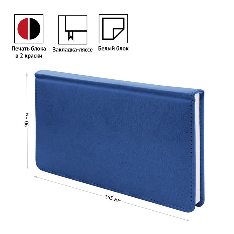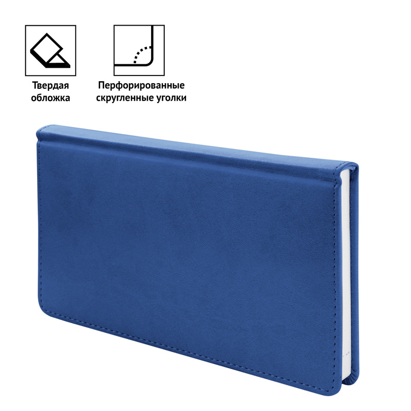 Еженедельник датированный карманного формата из коллекции «Winner». Обложка изготовлена из высококачественного кожзаменителя с поролоновой прослойкой, цвет обложки - синий. Внутренний блок состоит из 64 листов офсетной бумаги плотностью 70 г/м2, печать блока в 2 краски, справочный материал. Удобная закладка-ляссе.