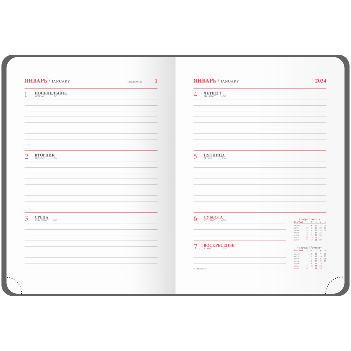Еженедельник датированный 2024г., A5, 64л., кожзам, OfficeSpace 'Winner', черный