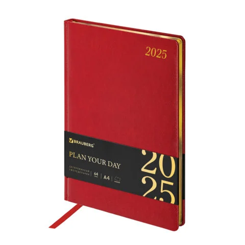 Еженедельник датированный 2025, 210х297 мм, А4, BRAUBERG 'Iguana', под кожу, красный, 115948
