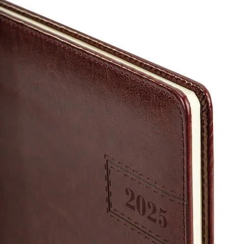 Еженедельник датированный 2025, 210х297 мм, А4, BRAUBERG 'Imperial', под кожу, коричневый, 115943