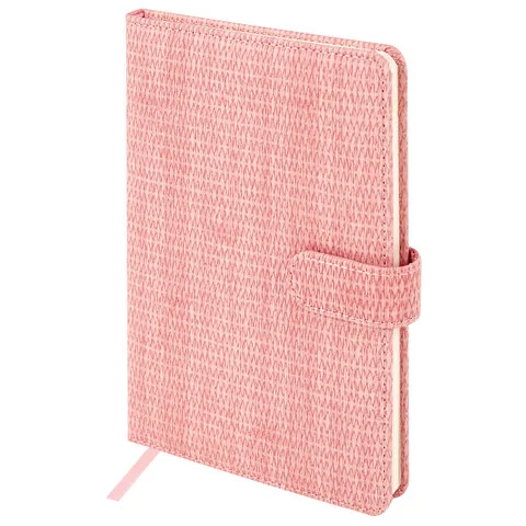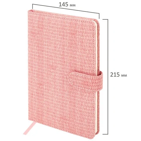 Внутренний блок включает 64 листа тонированной бумаги плотностью 70 г/м2. Благодаря стандартному формату А5 еженедельник удобно использовать как в офисе, так и на выездных деловых встречах. Твердая обложка, стилизованная под кожу с текстурной выработкой, фиксируется магнитной застежкой, поэтому еженедельник не откроется в сумке или портфеле и страницы не помнутся. Подходит для горячего тиснения. Дополнением является закладка-ляссе, с помощью которой при необходимости можно быстро открыть еженедельник на нужной странице. Для заметок в еженедельнике имеется 7 страниц в конце внутреннего блока. Помимо прочего, еженедельник снабжен обширным справочным материалом. Выполнен в нежном розовом цвете.