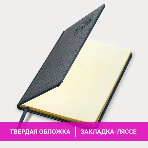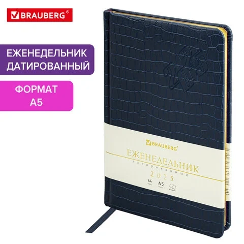 Еженедельник датированный 2025, А5, 145х215 мм, BRAUBERG 'Comodo', под кожу, темно-синий, 115957