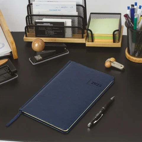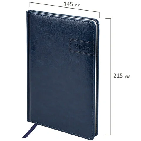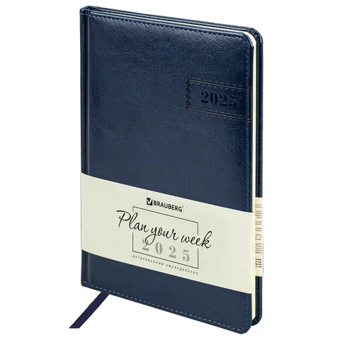 Еженедельник датированный 2025, А5, 145х215 мм, BRAUBERG 'Imperial', под кожу, синий, 115964