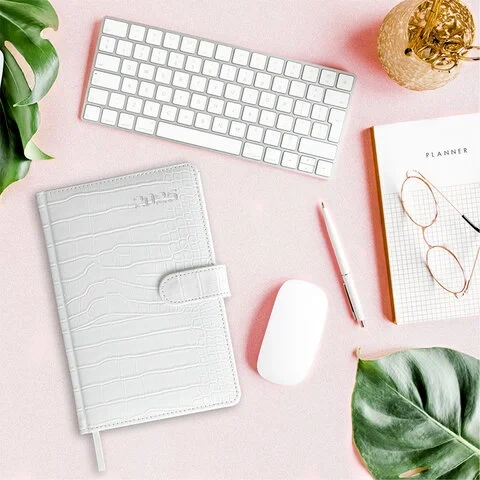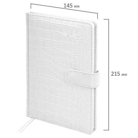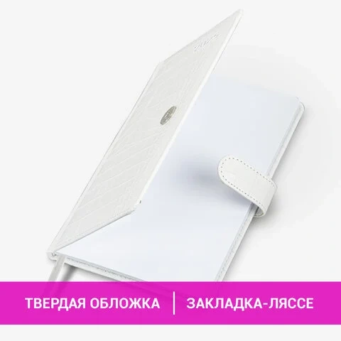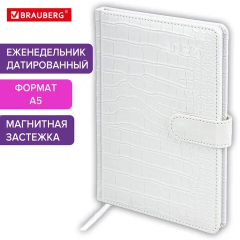 Еженедельник датированный 2025, А5, 145х215 мм, BRAUBERG 'Party', под кожу, белый, 115969