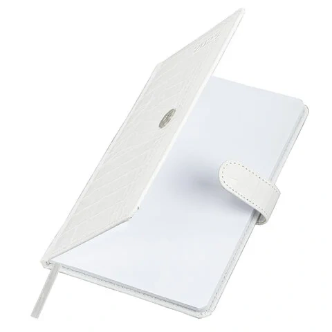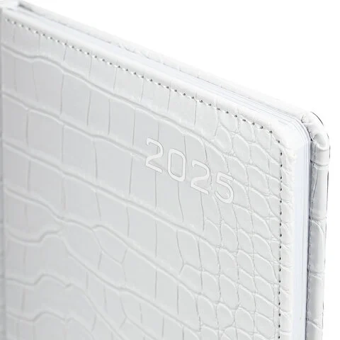 Внутренний блок включает 64 листа белой бумаги плотностью 70 г/м2. Благодаря стандартному формату А5 еженедельник удобно использовать как в офисе, так и на выездных деловых встречах. Твердая обложка, стилизованная под кожу крокодила, фиксируется магнитной застежкой, поэтому еженедельник не откроется в сумке или портфеле и страницы не помнутся. Подходит для горячего тиснения. Дополнением является закладка-ляссе, с помощью которой при необходимости можно быстро открыть еженедельник на нужной странице. Для заметок в еженедельнике имеется 7 страниц в конце внутреннего блока. Еженедельник снабжен обширным справочным материалом. Выполнен в классическом белом цвете.