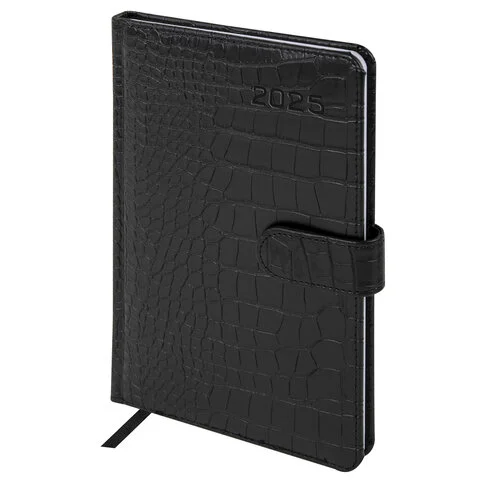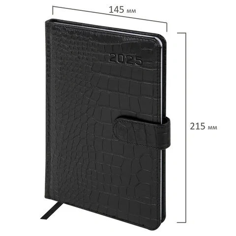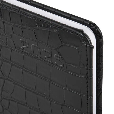 Еженедельник датированный 2025, А5, 145х215 мм, BRAUBERG 'Party', под кожу, черный, 115970