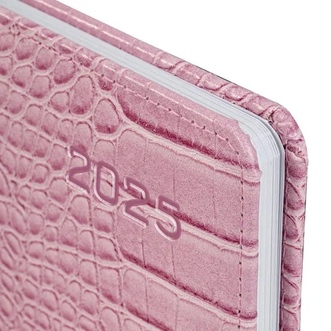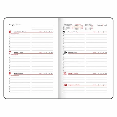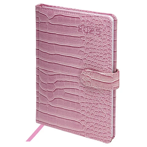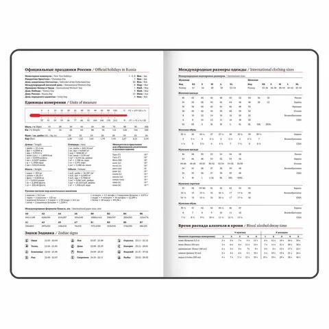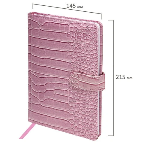 Внутренний блок включает 64 листа белой бумаги плотностью 70 г/м2. Благодаря стандартному формату А5 еженедельник удобно использовать как в офисе, так и на выездных деловых встречах. Твердая обложка, стилизованная под кожу крокодила, фиксируется магнитной застежкой, поэтому еженедельник не откроется в сумке или портфеле и страницы не помнутся. Подходит для горячего тиснения. Дополнением является закладка-ляссе, с помощью которой при необходимости можно быстро открыть еженедельник на нужной странице. Для заметок в еженедельнике имеется 7 страниц в конце внутреннего блока. Еженедельник снабжен обширным справочным материалом. Выполнен в коралловом цвете.