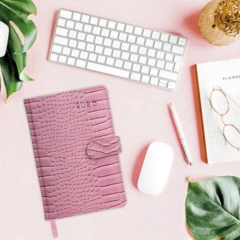 Еженедельник датированный 2025, А5, 145х215 мм, BRAUBERG 'Party', под кожу, коралловый, 115968