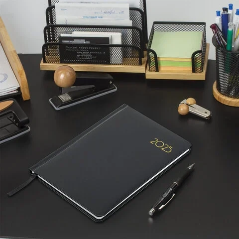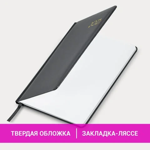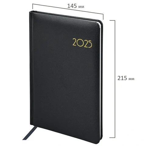 Еженедельник датированный 2025, А5, 145х215 мм, BRAUBERG 'Select', балакрон, черный, 115972
