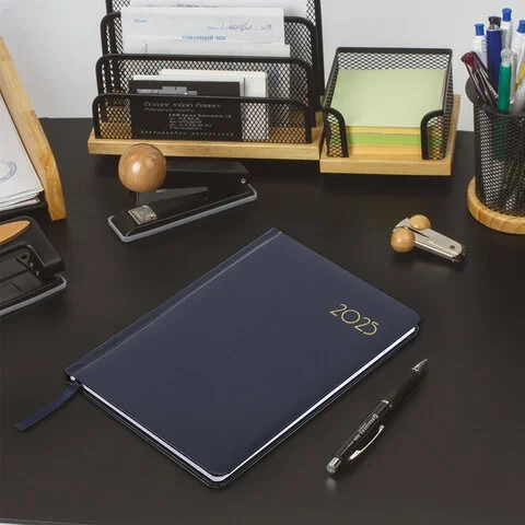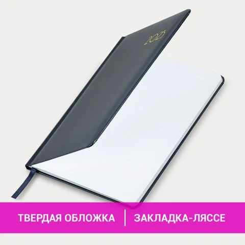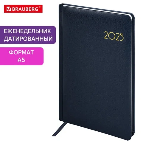 Еженедельник датированный 2025, А5, 145х215 мм, BRAUBERG 'Select', балакрон, темно-синий, 115971