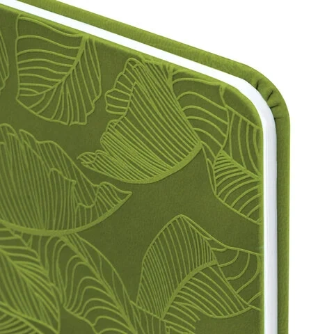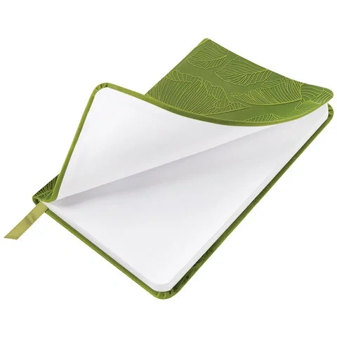 Внутренний блок включает 64 листа белой бумаги плотностью 70 г/м2. Благодаря малому формату А6 еженедельник удобно использовать как в офисе, так и на выездных деловых встречах. Мягкая (интегральная) обложка зеленого цвета под гладкую кожу имеет декоративное тиснение, что придает ежедневнику особый шарм. Материал обложки подходит для горячего тиснения. Дополнением является закладка-ляссе, с помощью которой при необходимости можно быстро открыть еженедельник на нужной странице. Для заметок в еженедельнике имеется 7 страниц в конце внутреннего блока. Помимо прочего, еженедельник снабжен обширным справочным материалом.