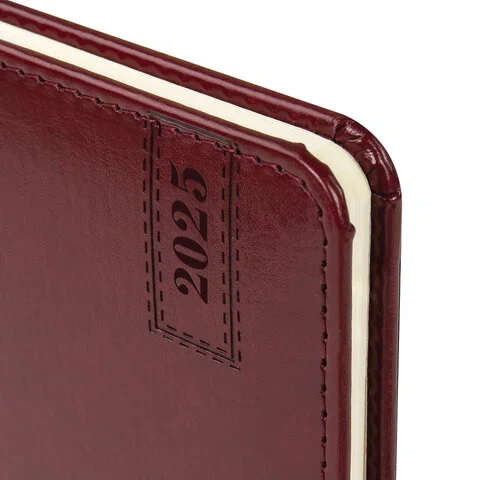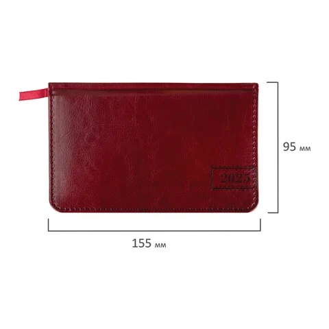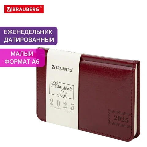 Еженедельник датированный 2025 МАЛЫЙ ФОРМАТ 95х155 мм А6, BRAUBERG 'Imperial', под кожу, бордовый, 1