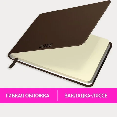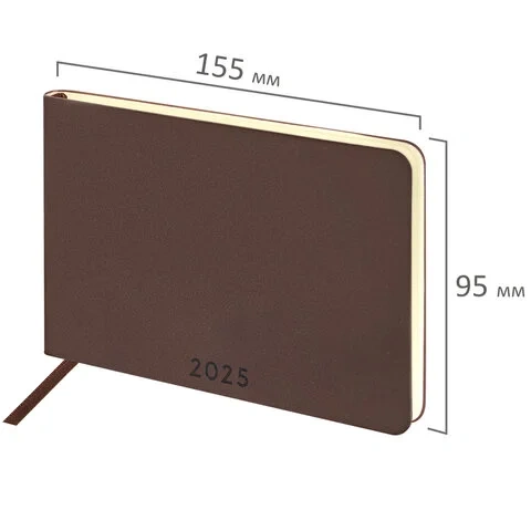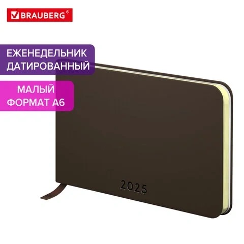 Еженедельник датированный 2025 МАЛЫЙ ФОРМАТ 95х155 мм А6, BRAUBERG 'Unique', темно-коричневый, 11599