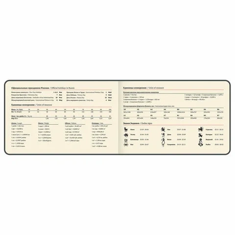 Внутренний блок включает 64 листа тонированной бумаги плотностью 70 г/м2. Благодаря малому формату А6 еженедельник удобно использовать как в офисе, так и на выездных деловых встречах. Гибкая обложка, стилизованная под гладкую кожу, подходит для горячего тиснения. Дополнением является закладка-ляссе, с помощью которой при необходимости можно быстро открыть еженедельник на нужной странице. Для заметок в еженедельнике имеется 7 страниц в конце внутреннего блока. Помимо прочего, еженедельник снабжен обширным справочным материалом. Выполнен в классическом темно-коричневом цвете.