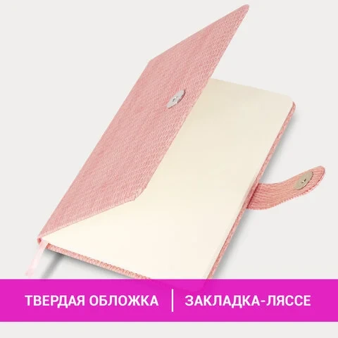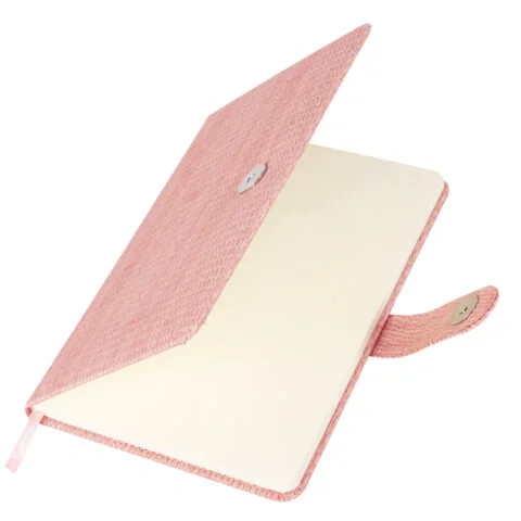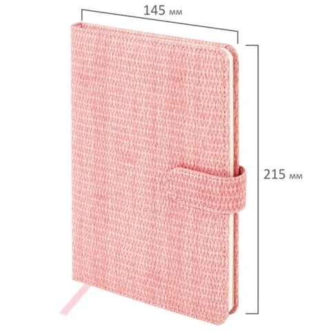 Внутренний блок включает 64 листа тонированной бумаги плотностью 70 г/м2. Благодаря стандартному формату А5 (145х215 мм) еженедельник удобно использовать как в офисе, так и на выездных деловых встречах. Твердая обложка, стилизованная под кожу с текстурной выработкой, фиксируется магнитной застежкой, поэтому еженедельник не откроется в сумке или портфеле и страницы не помнутся. Подходит для горячего тиснения. Еженедельник выполнен в розовом цвете.
