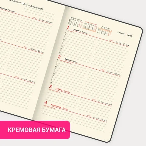 Датированный еженедельник BRAUBERG 'Augustus' – настоящая классика, проверенная временем. Идеально подойдет для офисных работников и людей, занимающихся бизнесом и ценящих свое драгоценное время.