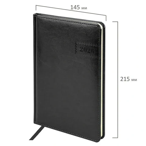 Еженедельник датированный 2026, А5, 145х215 мм, BRAUBERG 'Imperial', под кожу, черный, 117175