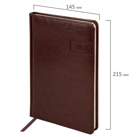 Еженедельник датированный 2026, А5, 145х215 мм, BRAUBERG 'Imperial', под кожу, коричневый, 117173