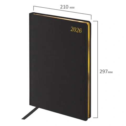 Еженедельник датированный 2026, БОЛЬШОЙ ФОРМАТ 210х297 мм, А4, BRAUBERG 'Iguana', под кожу, черный,