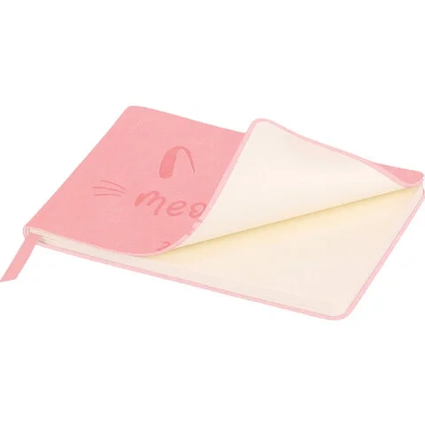 Внутренний блок включает 64 листа тонированной бумаги плотностью 70 г/м2. Благодаря малому формату А6 (105х160 мм) еженедельник удобно использовать как в офисе, так и на выездных деловых встречах. Гибкая обложка розового цвета, стилизованная под гладкую кожу, подходит для горячего тиснения.