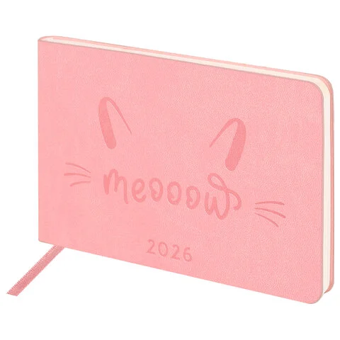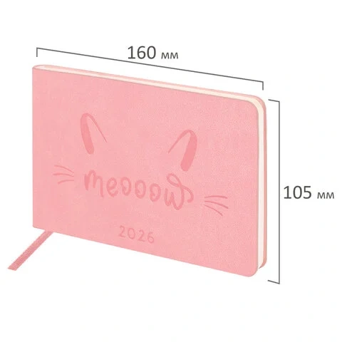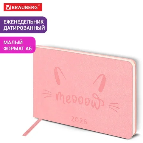 Еженедельник датированный 2026 МАЛЫЙ ФОРМАТ 105х160 мм, А6, BRAUBERG 'Imprint', тиснение, розовый, 1