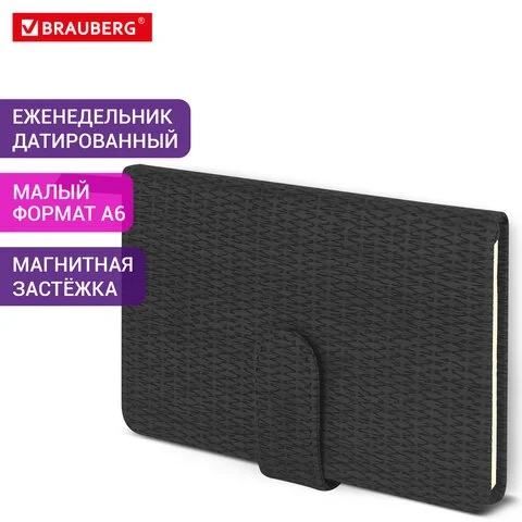 Еженедельник датированный 2026 МАЛЫЙ ФОРМАТ 95х155 мм, А6, BRAUBERG 'Augustus', под кожу, черный, 11