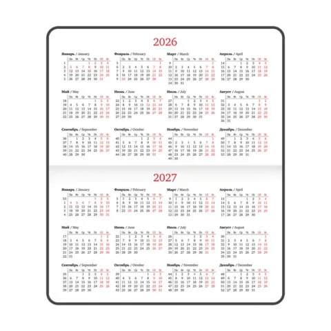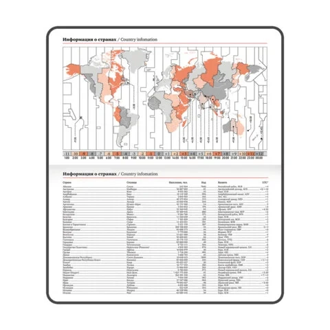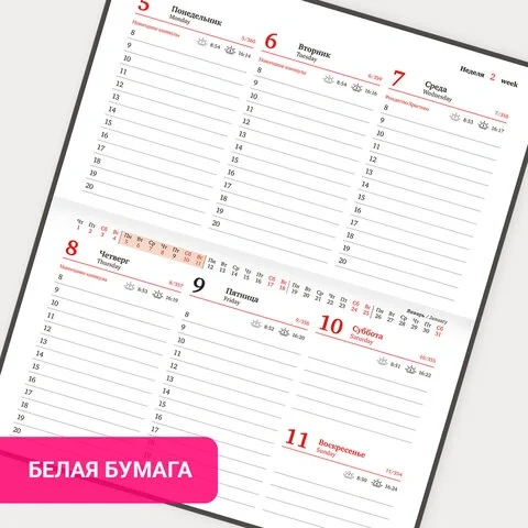Дополнением является закладка-ляссе, с помощью которой при необходимости можно быстро открыть еженедельник на нужной странице. Для заметок в еженедельнике есть 7 страниц в конце внутреннего блока. Помимо прочего, еженедельник снабжен обширным справочным материалом.