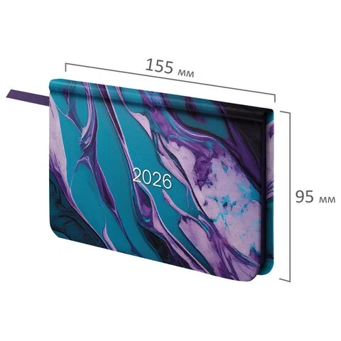 Еженедельник датированный 2026 МАЛЫЙ ФОРМАТ 95х155 мм, А6, BRAUBERG 'Vista', под кожу, 'Мрамор', 117
