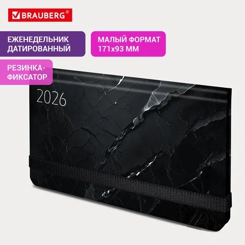 Еженедельник датированный 2026 с резинкой 171х93 мм, BRAUBERG, твердый, УФ-ЛАК, 64 л., 'Marble', 117
