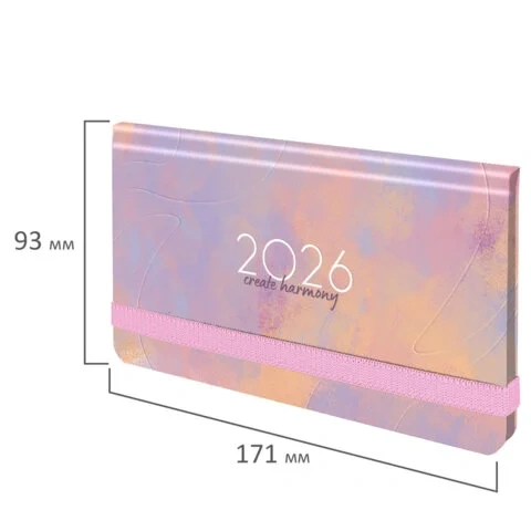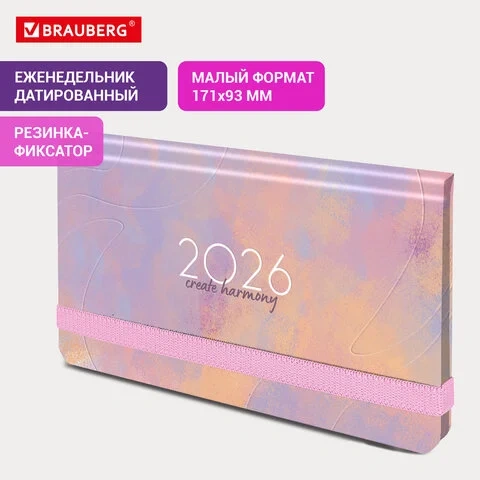 Еженедельник датированный 2026 с резинкой 171х93 мм, BRAUBERG, твердый, УФ-ЛАК, 64 л., 'Пастель', 11