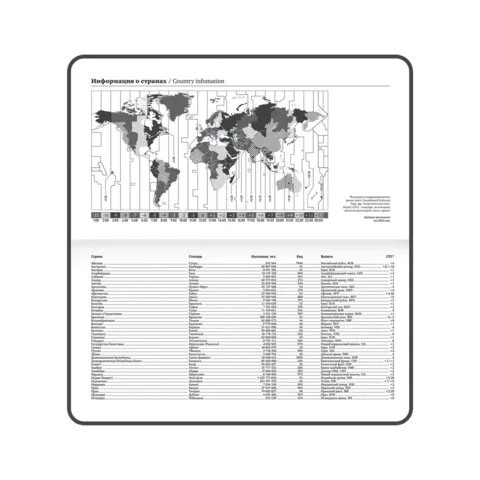 Резинка-фиксатор надежно защищает от случайного раскрытия в сумке или портфеле. Еженедельник снабжен справочным материалом.