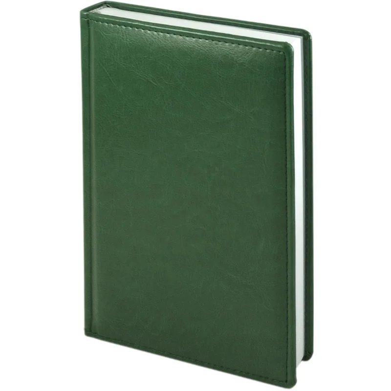 Ежедневник формата А6 датированный на 2025 год, цвет зеленый 100х150 мм, ляссе серебристого цвета, 336 страницы, блок в 2 краски, календарь на 2025-2026 гг. Обложка из высококачественного переплетного материала зеленого цвета, имитирующего натуральную кожу, с поролоном. Возможно нанесение логотипа на обложку любым способом тиснения. Блок: офсет 70 г/кв.м (линейка), перфорация уголка. Содержит информационно-справочный блок - личные данные, праздники, дни рождения, полезные сервисы, пароли, регулярные платежи, важные телефоны, единицы измерения, форматы бумаги, товарный штих-код, размеры одежды, символы по уходу за одеждой, планы на год, блок для заметок.