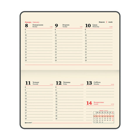 Датированный еженедельник BRAUBERG 'Augustus' – настоящая классика, проверенная временем. Идеально подойдет для офисных работников и людей, занимающихся бизнесом и ценящих свое драгоценное время.