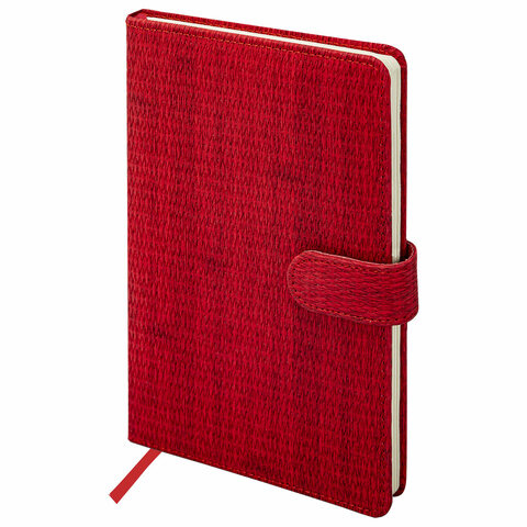 Внутренний блок включает 64 листа тонированной бумаги плотностью 70 г/м2. Благодаря стандартному формату А5 еженедельник удобно использовать как в офисе, так и на выездных деловых встречах. Твердая обложка, стилизованная под кожу с текстурной выработкой, фиксируется магнитной застежкой, поэтому еженедельник не откроется в сумке или портфеле и страницы не помнутся. Подходит для горячего тиснения. Дополнением является закладка-ляссе, с помощью которой при необходимости можно быстро открыть еженедельник на нужной странице. Помимо прочего, еженедельник снабжен обширным справочным материалом. Выполнен в благородном красном цвете.